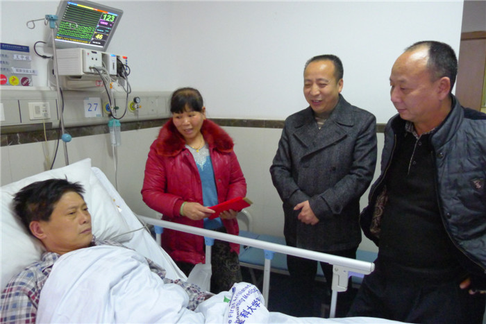 [搏永物業(yè)通訊員]2015年2月13日下午,公司總經(jīng)理、黨支部書記商德勇、黨支部副書記、工會主席龔南子、保安部經(jīng)理李利榮等專程來到重醫(yī)附一院神經(jīng)內(nèi)科,親切慰問了公司駐重慶愛爾眼科醫(yī)院保安分隊王中銘隊長。王中銘因患病毒性肺炎高燒不退,終于堅持不住崗位工作,被緊急送往醫(yī)院救治。公司領(lǐng)導(dǎo)們得知情況后,放下節(jié)前緊張繁雜的行政管理事務(wù),共同來到醫(yī)院看望了王中銘隊長,當商總代表公司黨政工把慰問金和慰問禮品送到王中銘手中時,王中銘非常感動,他激動地握住商總的手說:感謝商總來看我,感謝公司領(lǐng)導(dǎo)關(guān)心我,我生病了,工作沒有做好,我心頭有愧。商總連連擺手說:你是公司的老員工,今年又被評為年度優(yōu)秀分隊長,基層管理工作做得很好,服務(wù)單位領(lǐng)導(dǎo)反饋意見很好,大家都很贊賞你,我們應(yīng)該來看望你,只是這幾天工作確實忙不過來,來遲了,希望你好好配合醫(yī)生檢查治療,安心養(yǎng)病,工作上的事不用操心,公司已經(jīng)安排妥當,等身體完全養(yǎng)好了再上崗工作,你生病沒有來參加公司年度工作總結(jié)表彰大會,今天把你的優(yōu)秀分隊長獲獎證書和獎金也帶來給你,就是鼓勵你抓基層管理再接再厲,團結(jié)分隊全體保安員共同為公司、為服務(wù)單位做好安保工作,明年再創(chuàng)佳績。王中銘表示:請商總放心,請公司放心,我一定要把工作做好,不辜負領(lǐng)導(dǎo)對我的信任和培養(yǎng),努力學(xué)習(xí),團結(jié)同志,奮力上進,為公司發(fā)展壯大貢獻自己的一份力量。